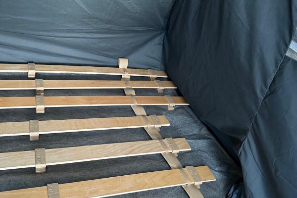 Sie möchten besonders gut schlafen in Ihrem Camp-let? Ein Lattenrost bietet Ihnen mehr Liegekomfort und eine bessere Ventilation unter den Matratzen. Er trägt zu einer geringeren Kondenswasserbildung bei. .