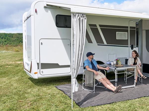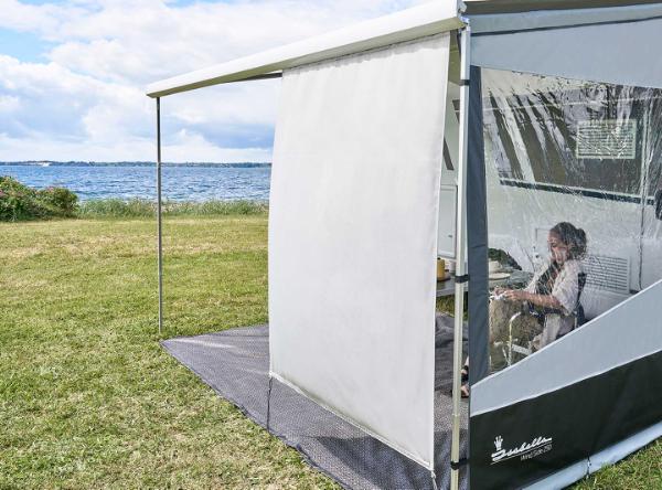 Isabella Shade Curtain til markiser er den perfekte løsning til at skabe ekstra skygge og privatliv på din campingtur. Frontgardinet måler 144 x 170 cm og skaber effektivt skygge og beskytter dig mod solens stråler. Det giver også ekstra privatliv, uanset om du camperer på en travl campingplads eller et afsides sted.