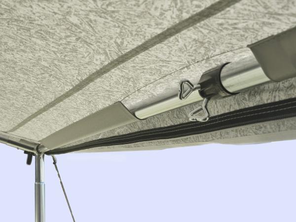 Megastel-putkiston ansiosta Atlas-aurinkokatos seisoo tukevasti myös tuulessa ja sateessa. Siksi se on erinomainen valinta kausipaikkalaiselle.