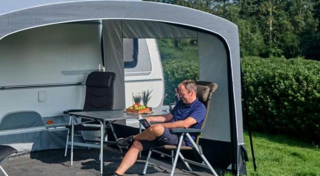 Tilavan Ventura AIR Sol -ilma-aurinkokatoksen avulla voit luoda lisää varjoa ja suojaa matkailuvaunun eteen. Edistyksellisen ilmajärjestelmän kaikki ilmaputket liitetään toisiinsa täysin tiiviiksi järjestelmäksi, ja ilmaa voidaan pumpata kätevästi yhden venttiilin kautta. Tämä minimoi ilmavuotojen riskin, ja aurinkokatos pysyy vakaasti paikallaan myös sääolosuhteiden vaihdellessa. Sol-aurinkokatos luo 250 x 400 cm:n kokoisen varjoisan alueen ja auttaa pitämään sisätilat viileämpinä, sillä auringonsäteet eivät pääse suoraan ikkunoista läpi.