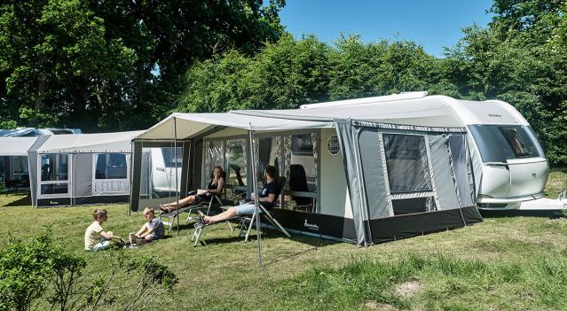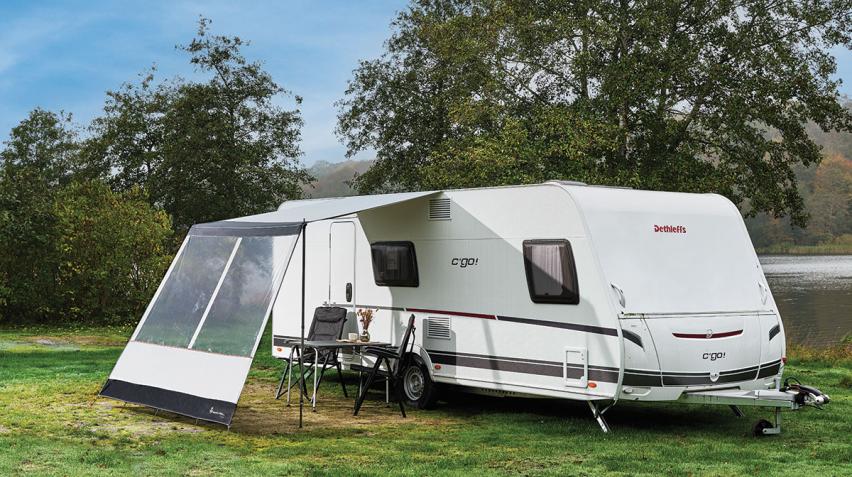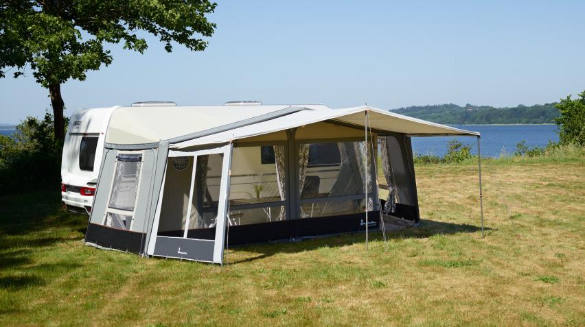 Si votre caravane est équipée d'un auvent coupe-vent, vous pouvez agrandir votre espace extérieur en fixant un Isabella Air Y, Shadow Canopy ou Cosy Corner Levo directement sur le rail de l'auvent coupe-vent.