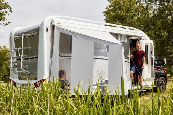 Créez un coin confortable et abrité avec le Cosy Corner Levo. Parfait pour un moment de tranquillité à l'ombre ou une pause café relaxante devant votre caravane, camping-car ou van. Le Cosy Corner Levo est conçu pour être extrêmement facile à monter : il tient avec un seul piquet et peut être déplacé le long du rail de la caravane ou du rail du store pour un positionnement optimal.