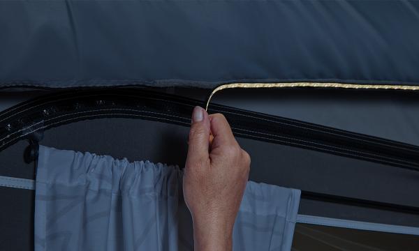 De lichtsnoeren bevestig je met klittenband aan de Airtubes van je Ventura Air-voortent of met tape aan de stokken van je (voor)tent. Je kunt het ledlichtsnoer combineren met een verlengkabel of t-kabel om de verlichting aan jouw eigen wensen aan te passen. De lichtsnoeren kunnen de hele tent verlichten of voor een aangename sfeerverlichting met de leddimmer van Isabella worden gedimd.