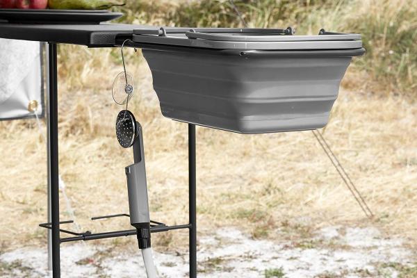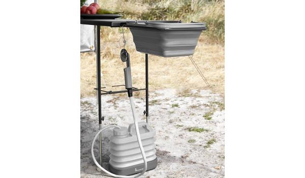 Hendig vannkran som er uunnværlig på camping. Med vannkranen får du en 2-i-1-løsning med dusjhode til badet og en vannkran til kjøkkenet. Så har du alltid en dusj for hånden og en kilde til rengjøring i bagasjen.