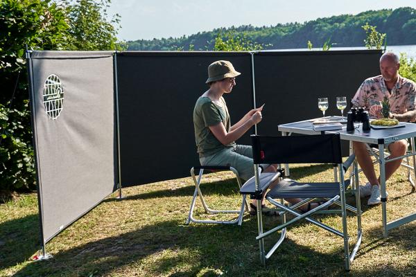 3-skrzydłowy parawan Granit zapewnia schronienie i prywatność, jednocześnie umożliwiając widok na kemping. Dzięki wysokości 130 cm skutecznie chroni przed wiatrem, nie zasłaniając całkowicie otoczenia. Elegancka szara kolorystyka idealnie pasuje do większości przyczep kempingowych.