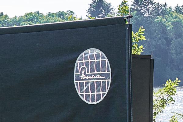 Parawan wykonany jest z barwionego w masie włókna Light Isacryl 260 g/m2 – lżejszej wersji materiału Isacryl stosowanego w przedsionkach Isabella. Light Isacryl zapewnia długą żywotność, zachowuje kolory pod wpływem promieni słonecznych i jest oddychający. Stelaż z rur stalowych Zinox zapewnia mocną i stabilną konstrukcję, dzięki czemu parawan pozostaje na swoim miejscu nawet przy silnym wietrze. Stelaż jest ocynkowany zarówno od wewnątrz, jak i na zewnątrz, co chroni go przed rdzą i zużyciem w miarę upływu czasu. Dzięki całkowitej wadze 7,59 kg jest łatwy w transporcie i szybki w montażu.