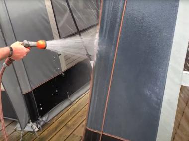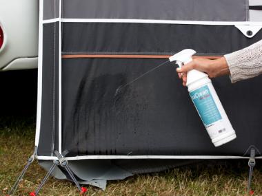 När du rengör tältduken och fönstren är det viktigt att du inte använder vanliga rengöringsmedel för hushållsbruk.