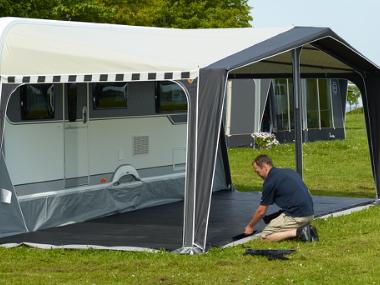 Förtält är ofta bredare inne vid husvagnen än i fronten. Därför är det bra att ha kunskap om golvytan innan du köper en golvmatta eller annat underlag.