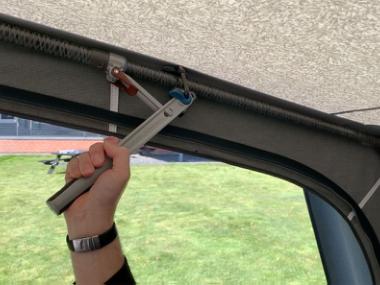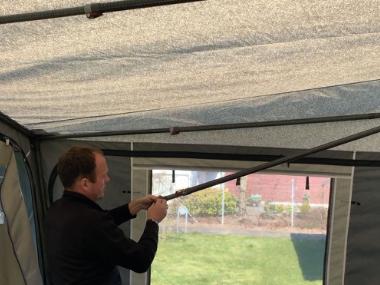 Skulle du vilja ha mer ventilation i förtältet på en varm sommardag? Använd den medföljande verandastången.