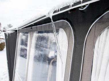 Under vintermånaderna är det särskilt viktigt att rengöra förtältet ofta och grundligt, både utvändigt och invändigt.