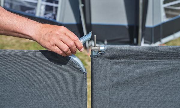Additional purchase: The gate is normally installed between two windbreaks as standard, but if you want to place it against your caravan or awning, you will need a support pole to complete the set. You can choose between the Mega Support Pole (900000118) or the CarbonX Support Pole (900000119).